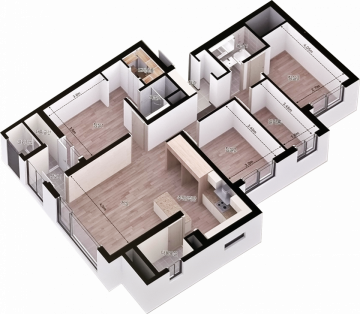 - 포세린 타일(복도 + 거실 + 주방) + 광폭 강마루(켄챠그레이_침실)